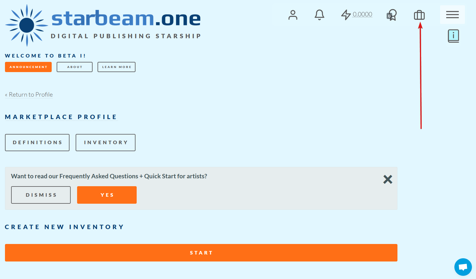 3. Press `Yes` on the prompt `Would you like to sell marketplace products with your Twitter identity?` ([it will take you here](https://starbeam.one/profile/marketplace)):\